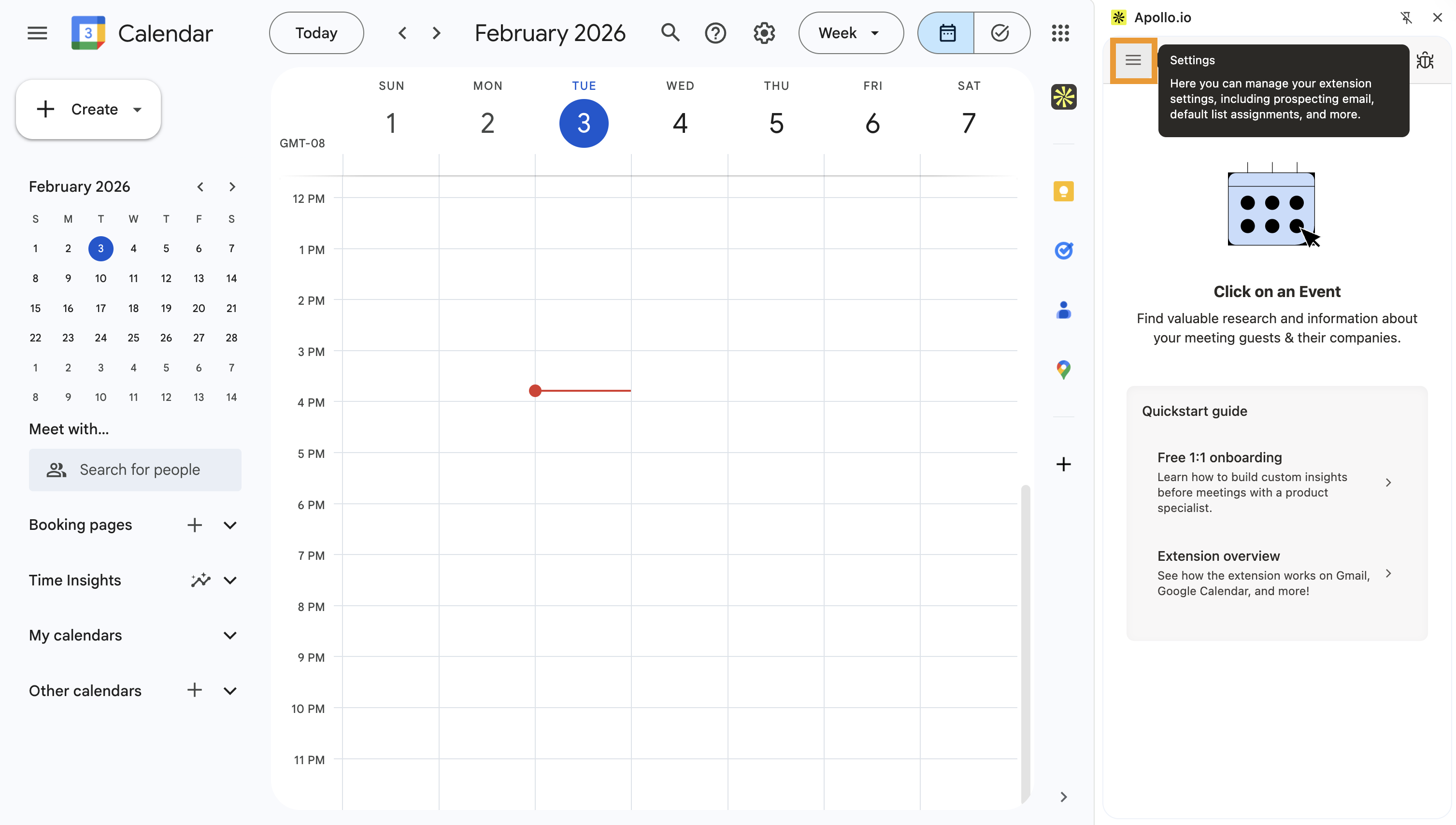 | Use the Apollo Chrome Extension in Google Calendar | Pull pre-meeting insights inside Google Calendar to walk into every call with the right people, company context, and talking points already lined up. |