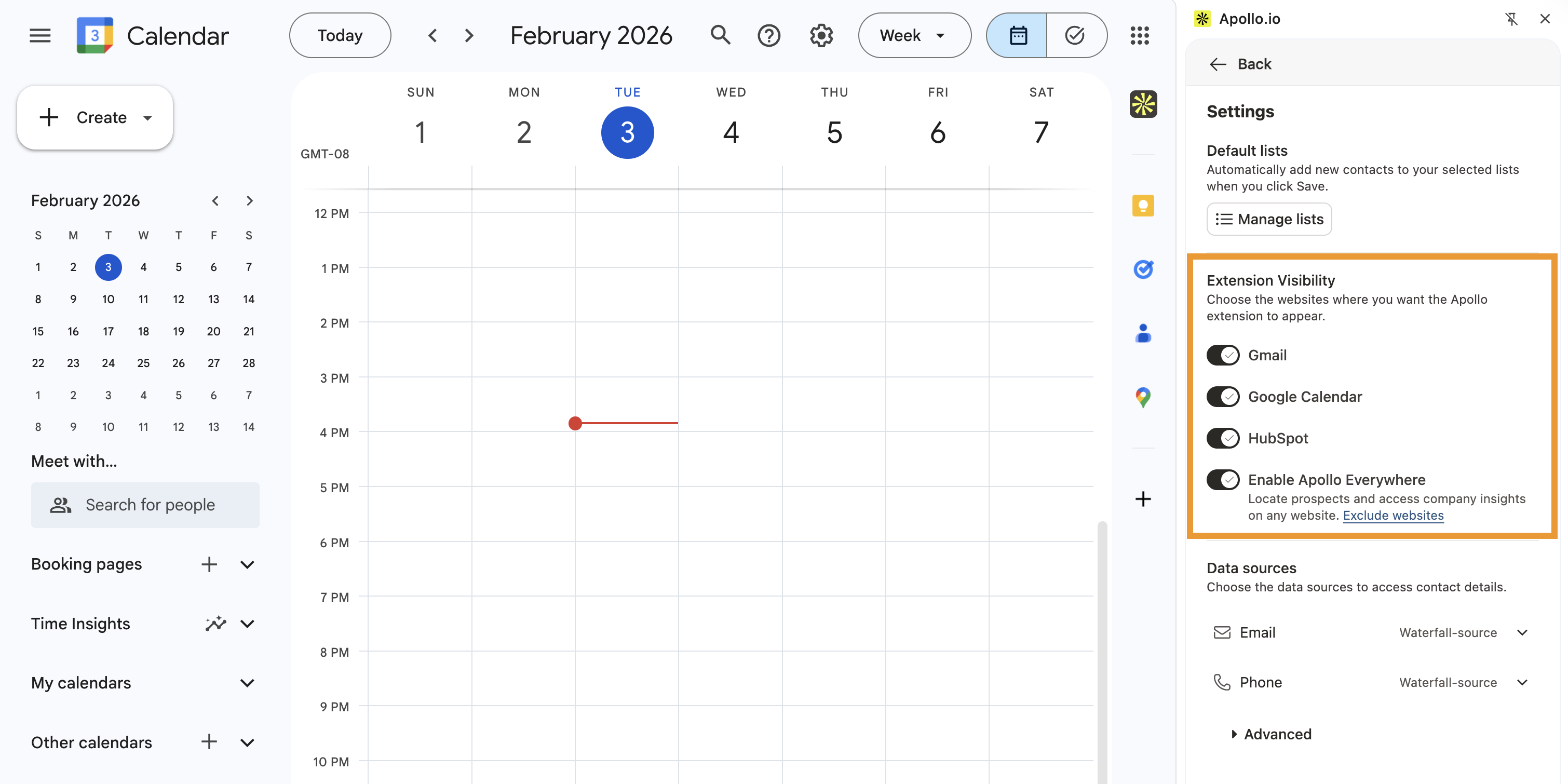 - Click the websites where you want the Apollo extension to appear. You can enable or disable the extension on Gmail, Google Calendar, your integrated CRM, or everywhere.